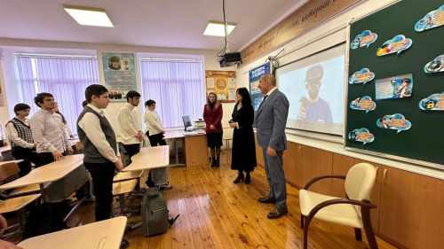 Сегодня, 18 ноября, в школе №9 г.Дербента председатель Собрания депутатов Гасан Мирзоев провёл внеурочное занятие «Разговоры о важном» на тему: «Искусственный интеллект и человек. Стратегия взаимодействия»
